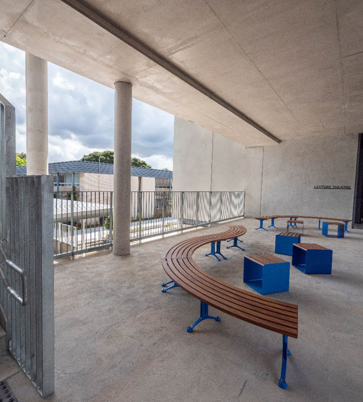 To ensure the safety and structural integrity of the building, we have utilised a combination of reinforced precast and insitu columns, along with insitu concrete walls that provide the necessary lateral resistance to earthquakes and wind loading. One-way banded post-tensioned slabs have been utilized for the floor systems, allowing for large spans to the learning spaces and catering to the large cantilevers that are required for the project.